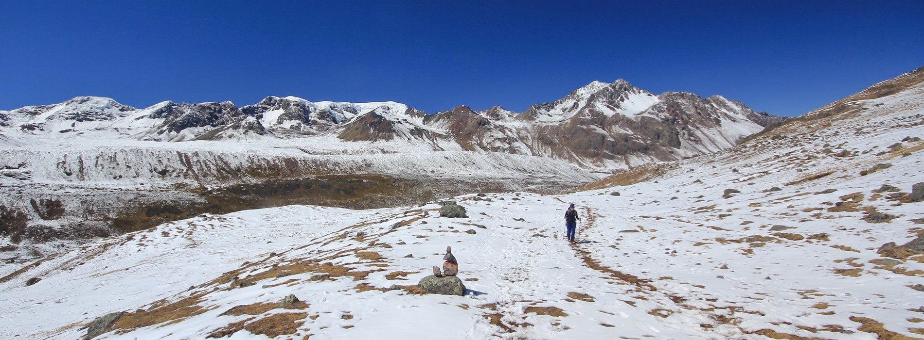After hiking for 1 hour and 30 minutes, we will start hiking up on a switchback trail to the next pass at 5,000 m / 16,404 ft. In which, we will enjoy the very dramatic vistas of Vilcanota range going in different directions, colored hills, and the glacier peaks.